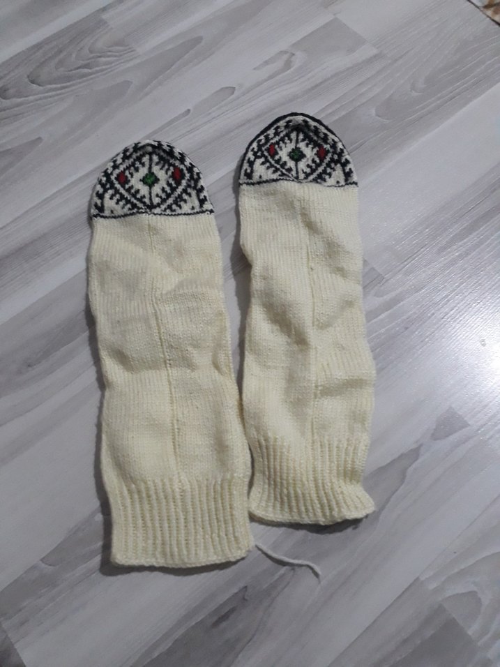 Beyaz renkte, örgü ve hiç kullanılmamış temiz tarzda kadın eldivenler. Parmak uçlarında bohem ve retro desenler bulunur. Sıcak ve rahat kullanım sağlar.