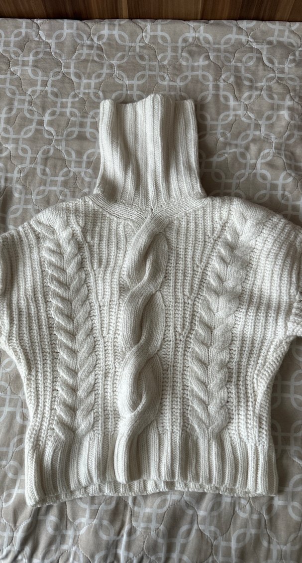 Fitted kesim beyaz örgü kazak, boğazlı ve uzun kollu. Örgü desenleriyle bohem tarzda, rahat ve şık bir günlük kullanıma uygun. ❄️