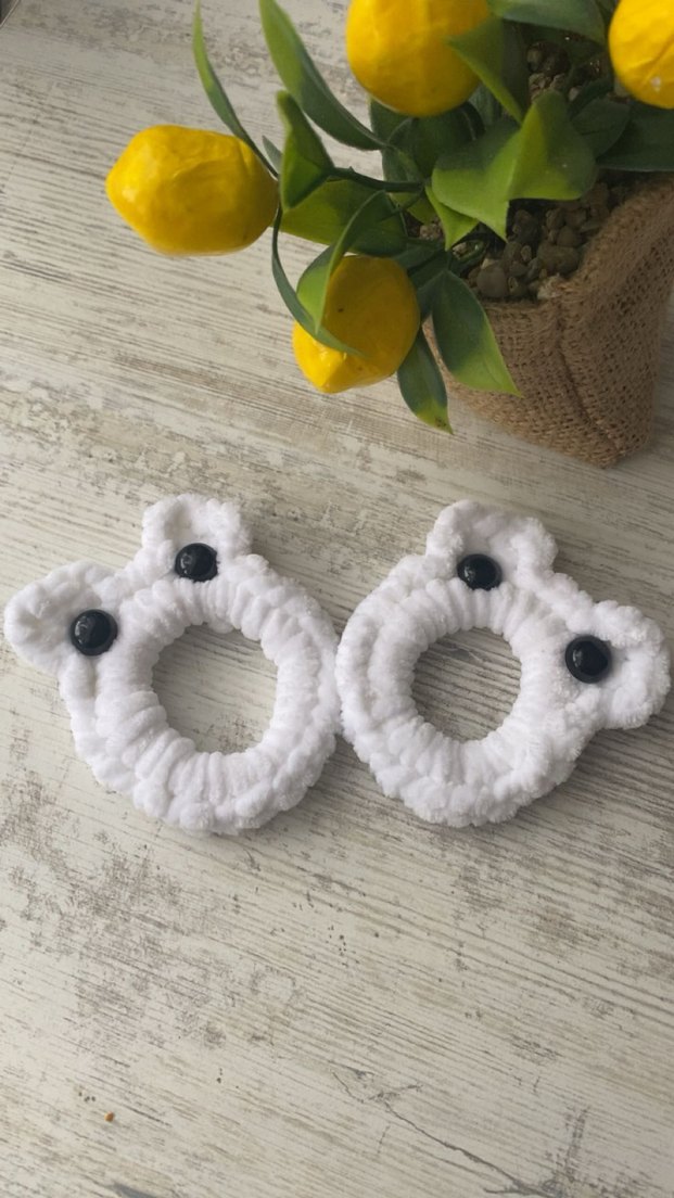 Beyaz örgü malzemeden yapılmış, siyah düğme detaylı, bohem tarzda rahat saç tokası seti. Retro ve hippie stil için uygundur. Özenle paketlenir toptan ve perakende satışımız vardır