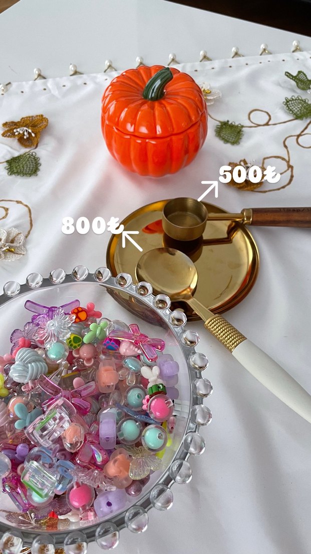 Bohem tarzı, altın renkli, nakış desenli ve pastel renkli boncuklarla süslenmiş çocuk takısı. Fiyatlar: 500₺ ve 800₺. ✨süpriz kaşık