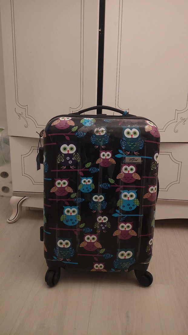 Koyu renkli, çok renkli baykuş desenli valiz. Tokalı detaylara sahip, bohem ve retro tarzını yansıtıyor. Dört tekerlekli ve üstten tutma saplı. bavulum 1 kişinin tüm eşyalarını alabilecek düzeyde yetişkinler içinde uygundur çocuklar içinde. ben çok severek kullandım. benimle birlikte birsuru ülke ve şehir gezdi emektar valizim benim birkaç hata defo var fermuari caoisiyor ama ucu kopuk. üzerine havalimanında yapıştırılan bantlar yüzünden izler var çıkar diye düşünüyorum. iade kabul etmiyorum