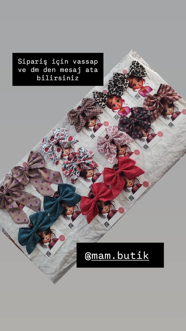 Bohem tarzda, koyu renklerde çok renkli desenli ve fiyonk detaylı çocuk saç tokaları.
