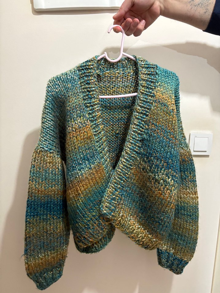 El örgüsüü s-m-l uyumlu Bohem tarzda, çok renkli iplikten örülmüş, bol kesim ve midi uzunlukta triko hırka. Uzun kollu ve günlük kullanıma uygun, rahat bir tasarım.