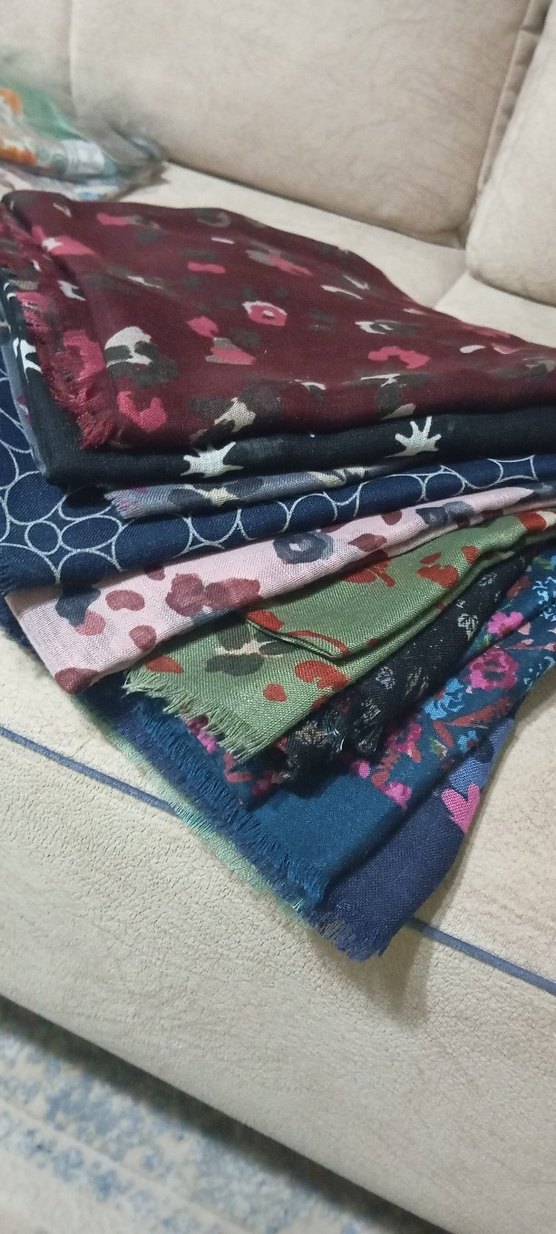 Bohem tarzda, çok renkli ve koyu tonlarda desenlere sahip, sentetik kumaştan drapeli kadın pamuklu eşarp. Rahat ve retro bir görünüm sunar.