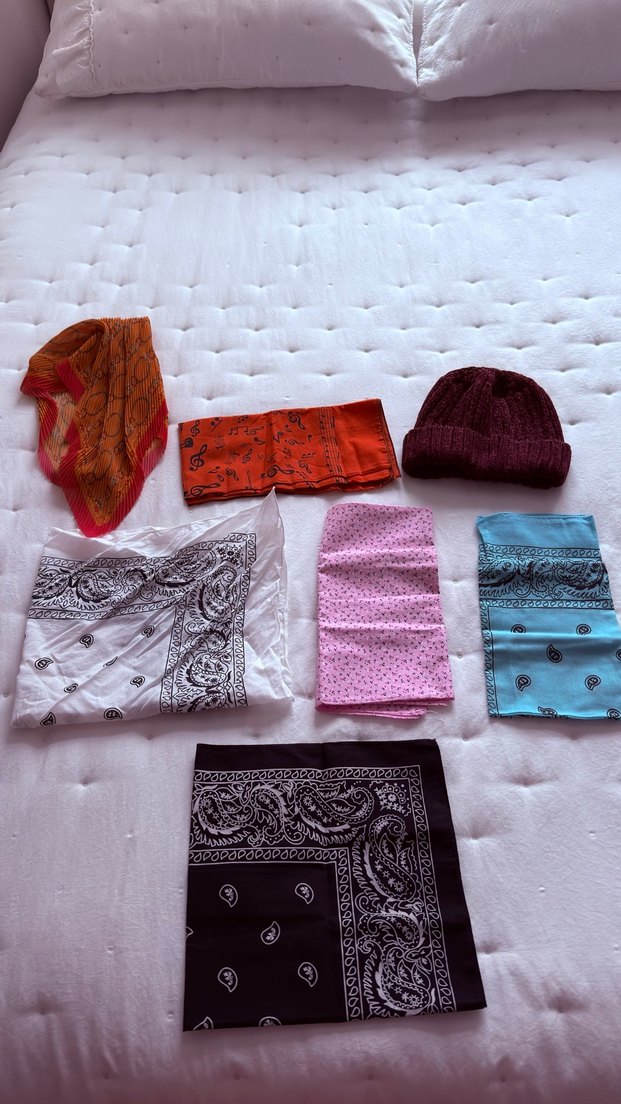 Örgü çok renkli tekstilden yapılmış, bohem, hippie ve retro tarzlarını yansıtan kadın fularları ve bandanalar. Karşı kültür görünümü için ideal.
