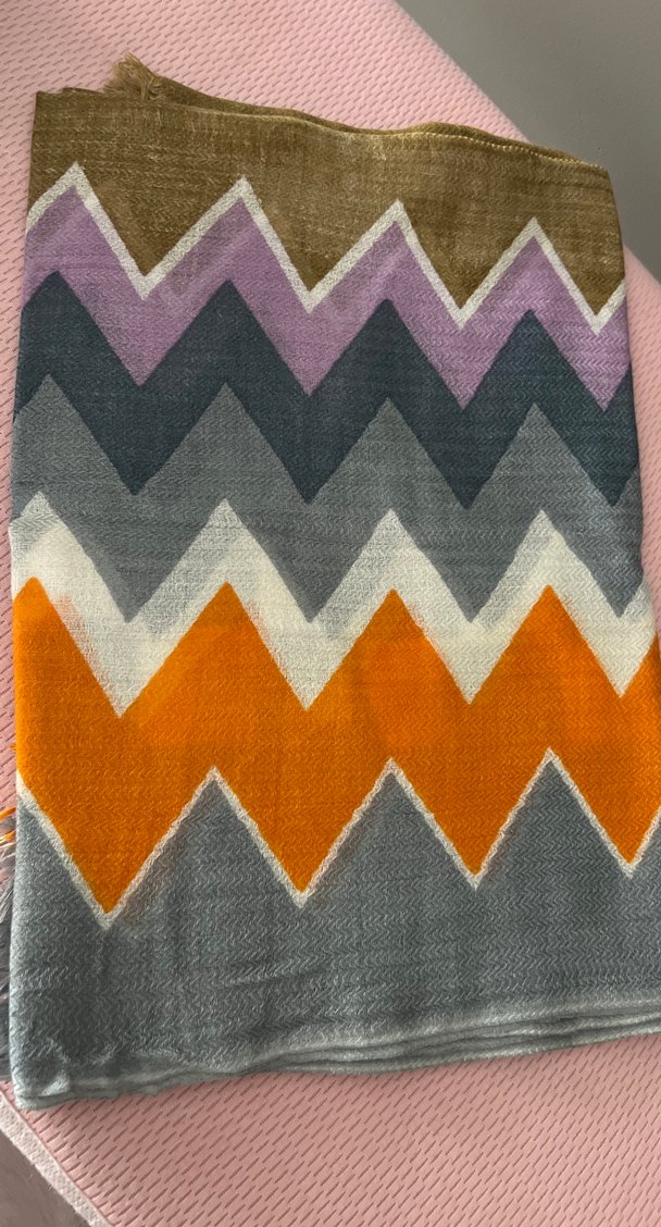 Kadınlar için çok renkli zigzag desenli, yumuşak yün ipek kumaştan örülmüş bohem tarzda Şal. Sadece bir kez kullanıldı etiketi yok ama ipekevi markasına ait firmaya sordurabilirsiniz.