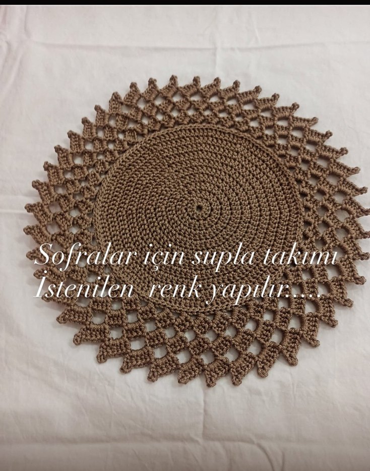 Bohem tarzda, el örgüsü detaylı supla takımı. Masanıza uyacak istediğiniz renklerde yapılabilir.
