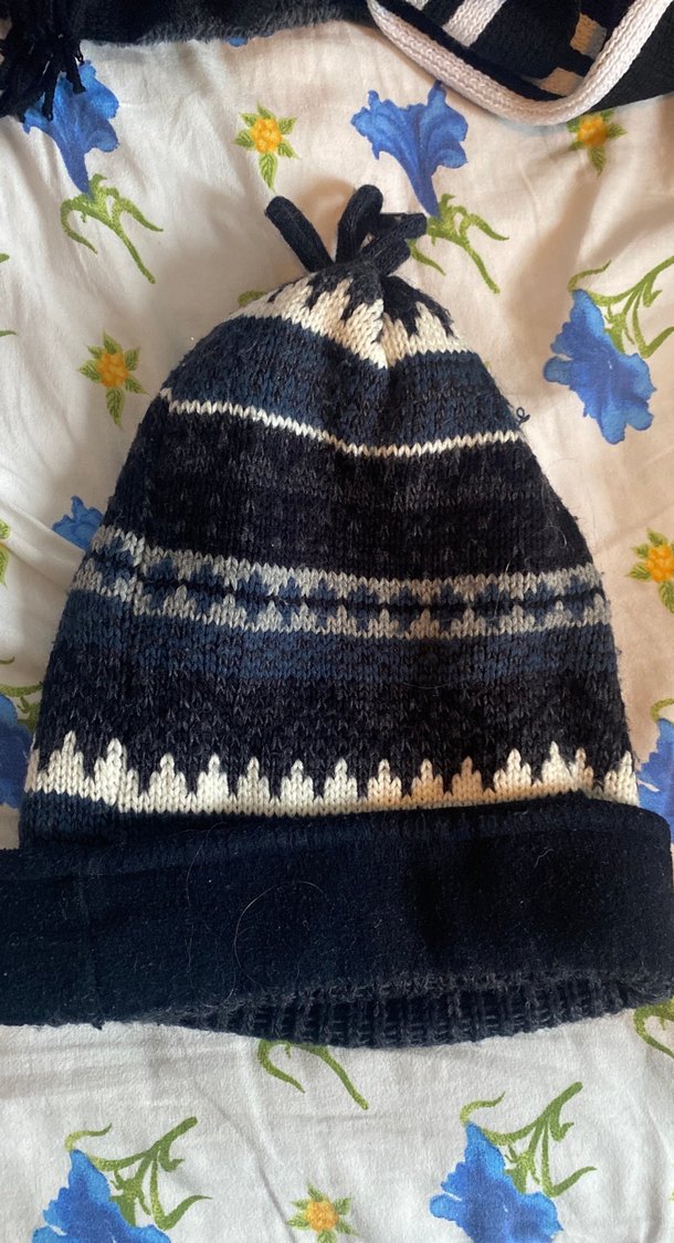Koyu mavi renkte, bohem tarzında örme erkek bere. Üst kısmında bağlama detayı bulunur, sıcak ve rahat bir yapıya sahiptir.