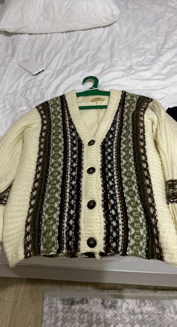 Bohem tarz gri desenli çizgili örgü kadın hırka, uzun kollu ve salaş kesimlidir. Günlük kullanıma uygundur. Bir kere giydim