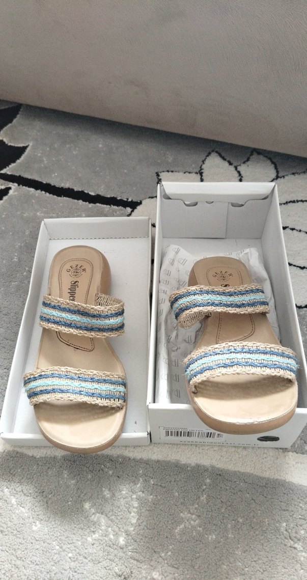 bohem tarz kadın dolgu topuklu sandalet kauçuk tabanlı, plaj için uygun. Ufak yıpranmalar fotoğraflarda belirtildi