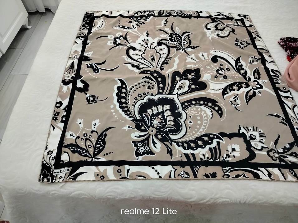 Kadınlar için kahverengi ve gri çiçek desenli, yumuşak sentetik kumaştan drapeli bohem tarz fular.