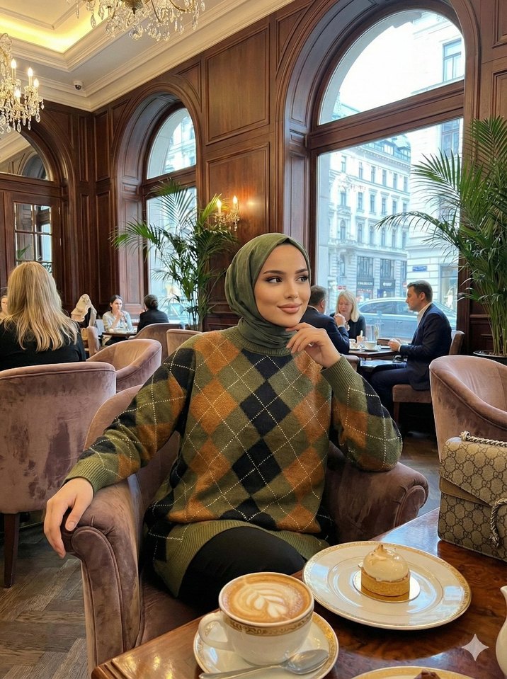 Bohem Tarz Kadın Haki Örgü Boğazlı Kazak