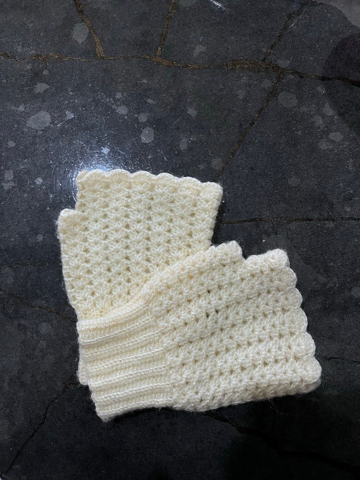 Yumuşak beyaz örgüden yapılmış, sade ve bohem tarzda kadın eldivenleri. İstenilen renge ve modele göre yapılabilir satıcı ile iletişime geçmeniz yeterlidir :)