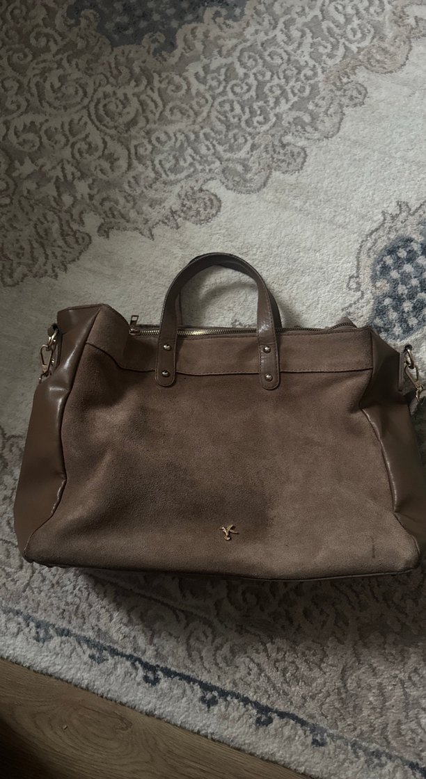 Kahverengi süet kadın çantası, fermuarlı ve bohem tarzda, günlük kullanım için trend casual görünüme uygun. hiç bir sorunu yok