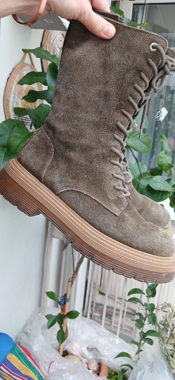 Bohem tarzda, yeşil süet kadın botu. Platform topuklu ve tokalı detaylara sahip, günlük kullanım için uygun. 39 numara.ninewest marka .ic tabanı yenilendi.ninevest degil baska marka yaziyor o yuzden