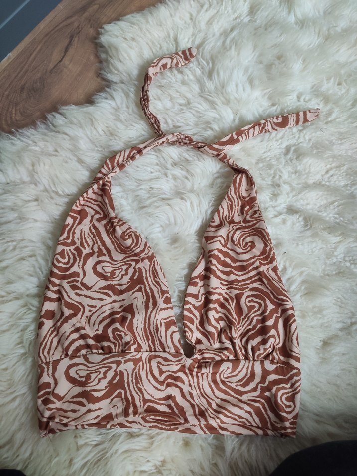 Bohem Tarz Kahverengi Batik Halter Bağlamalı Bluz