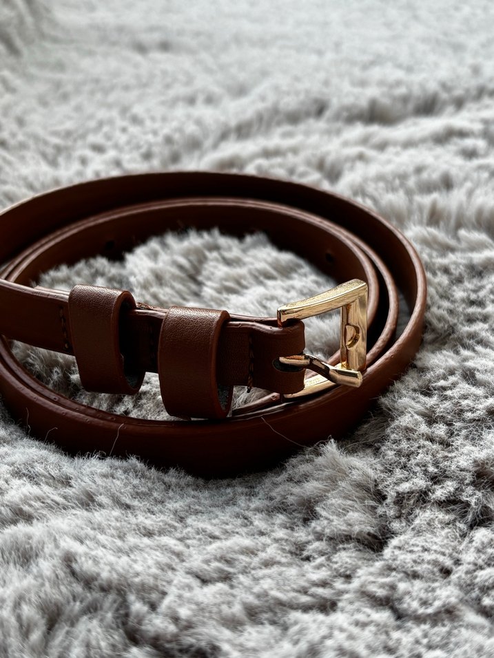 Kahverengi deri kemer, tokalı kapanışa sahip, minimalist ve bohem tarzda. Klasik ve zamansız bir görünüm sunar.