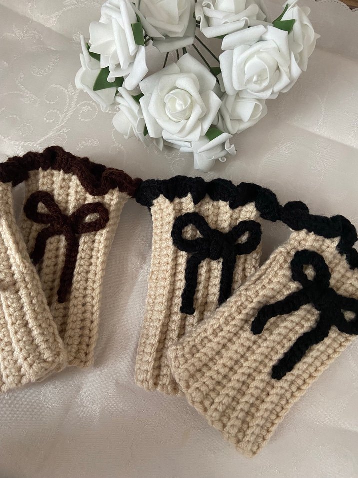 Bohem tarzda, koyu renk detaylı, örgü kumaştan yapılmış kahverengi kadın eldivenleri. İstenilen denkte örülür. Kişiye özel hazırlanır.