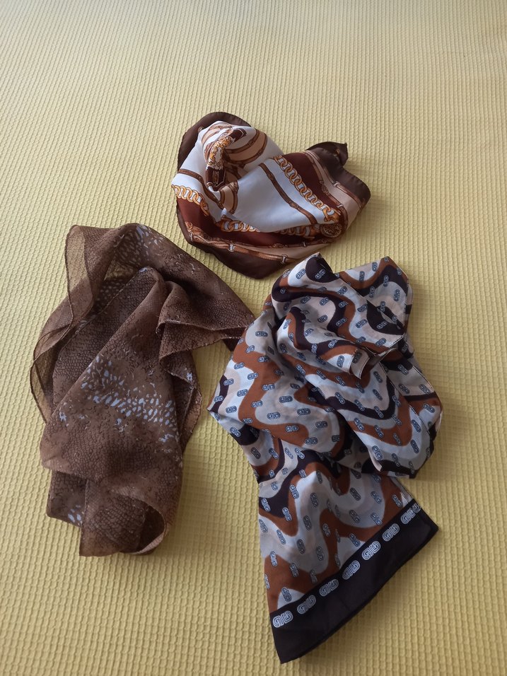 Koyu kahverengi, bohem ve retro tarzları yansıtan drapeli şallar. Kıyafetlere vintage dokunuş katar. 3 adet gelecek
