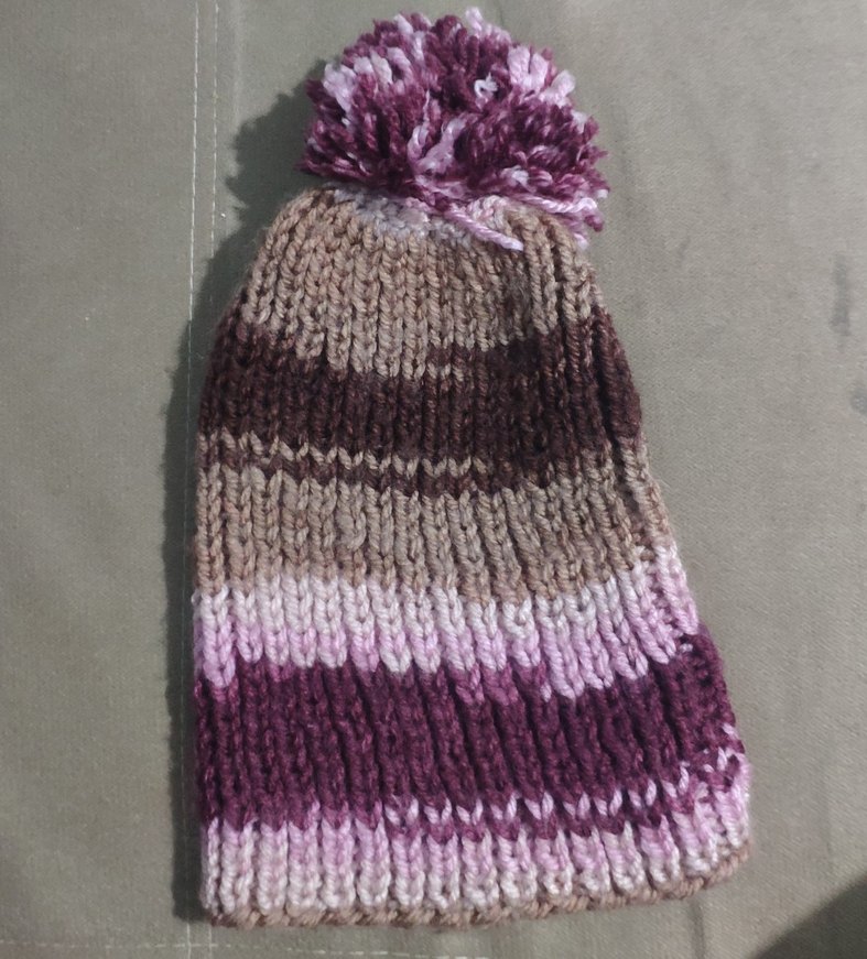 Bohem tarzda, bej ve gri tonlarında örgü kumaştan yapılmış, üstünde ponpon bulunan çocuk bere. Sıcak ve retro bir görünüm sunar.