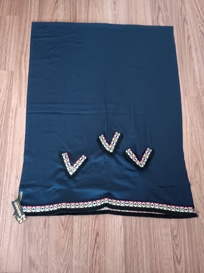 Koyu mavi renkte, kenarları renkli nakışlı ve dökümlü olan kadın fularıdır. Yumuşak sentetik kumaştan yapılmıştır, bohem ve retro tarzlara uygundur.