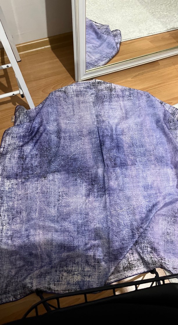 Lila keten kumaştan yapılmış, drapeli ve bohem tarzda kadın eşarp sokak modası ve avangart stiller için uygundur.