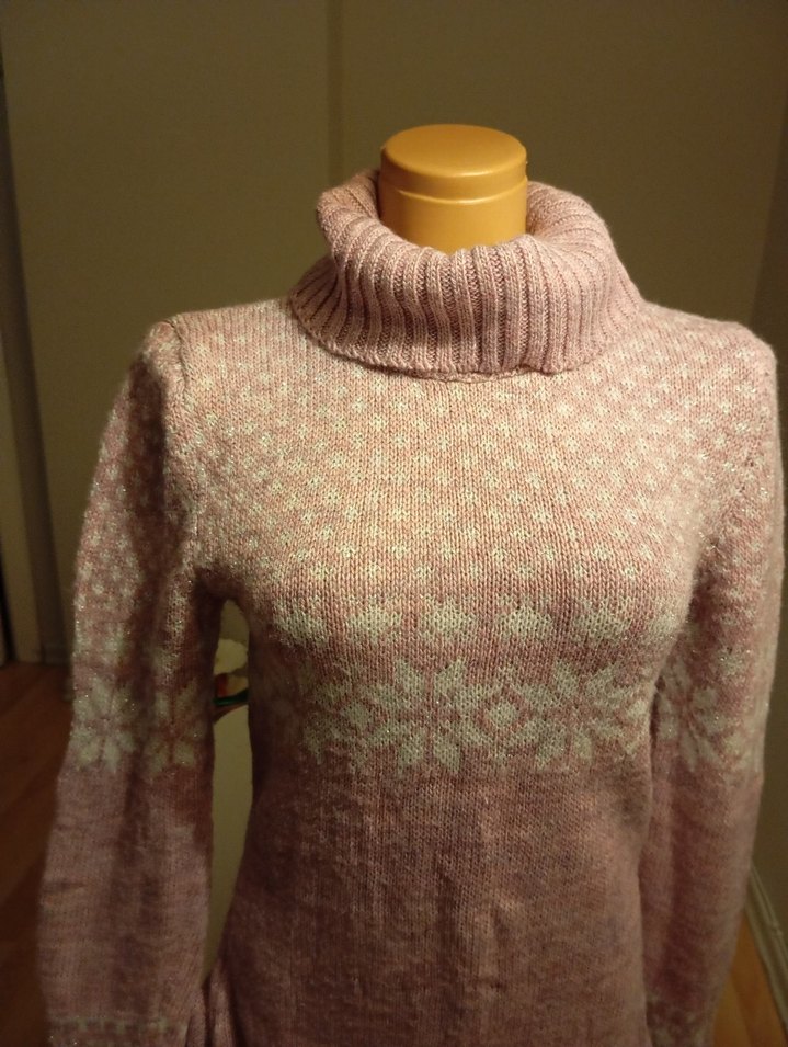 Lila renkte, yüksek yakalı ve uzun kollu örgü kazak. Rahat kesimi ve bohem tarzıyla günlük kullanıma uygundur. ❄️