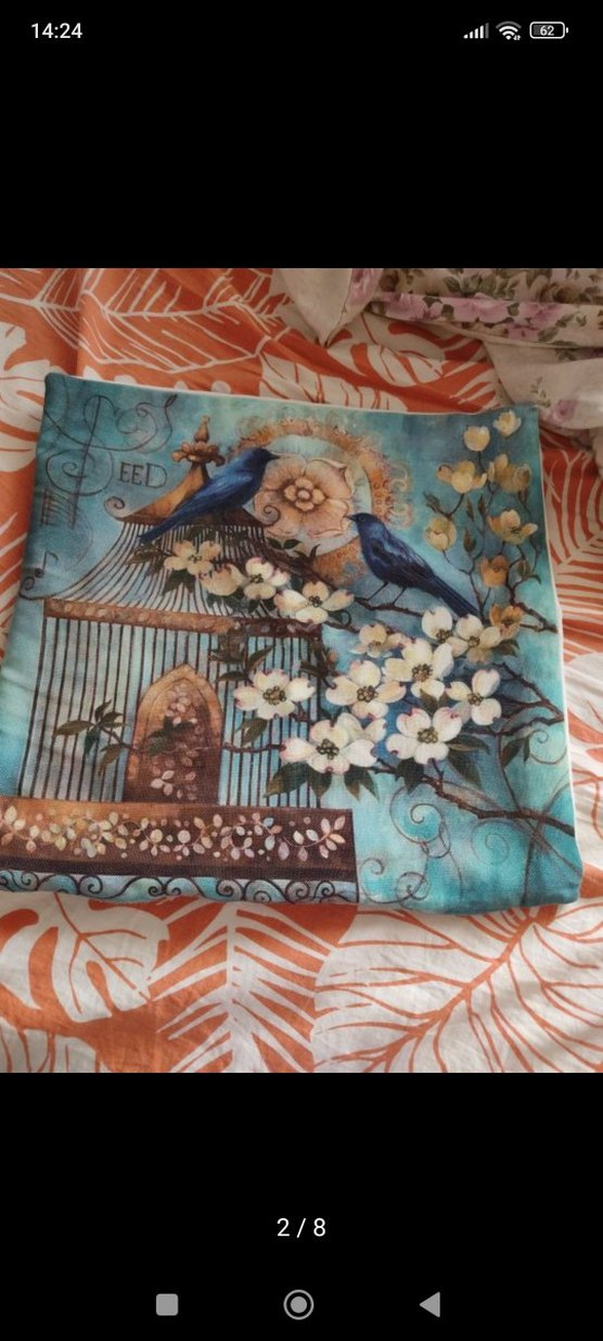 Bohem tarzda, pastel mavi zemin üzerine baskılı kuş, çiçek ve kafes desenli yumuşak kırlent kılıfı. ️3 adet gönderilecek mavinin ölçüsü 41 cm e 41 Parisli olanlar 43 cm e 45 cm