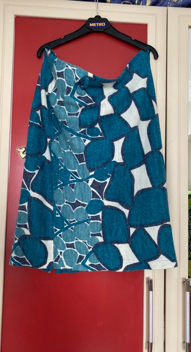 Mavi renkli, desenli, bayan eteği, günlük kullanıma uygun rahat ve bohem tarzda. Ölçüsü boy 58 bel toplam 84