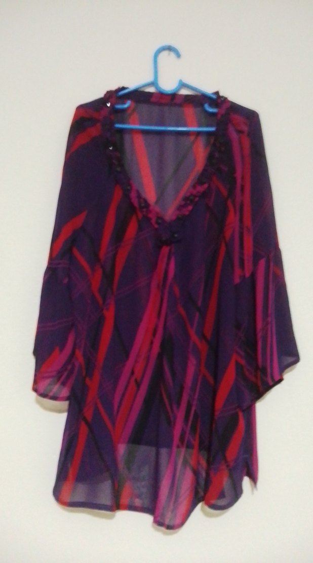 Mor tonlarında bağlama desenli, V yakalı ve uzun kollu bol kesim hamile tunik. Dökümlü yapısı ve midi boyu ile günlük kullanıma uygundur.44 bedenden 50 bedene kadar rahat olur