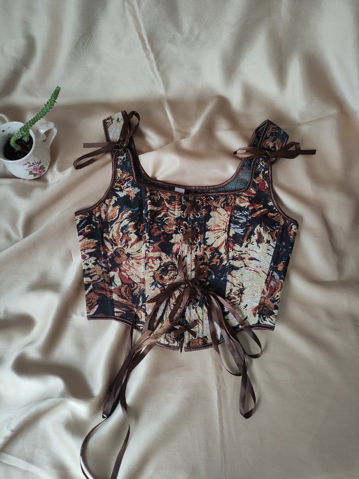 Strapless, bağcıklı ve kahverengi tie-dye desenli bu bohem tarz mini büstiyer günlük sokak modası için uygundur. sıfır üründür