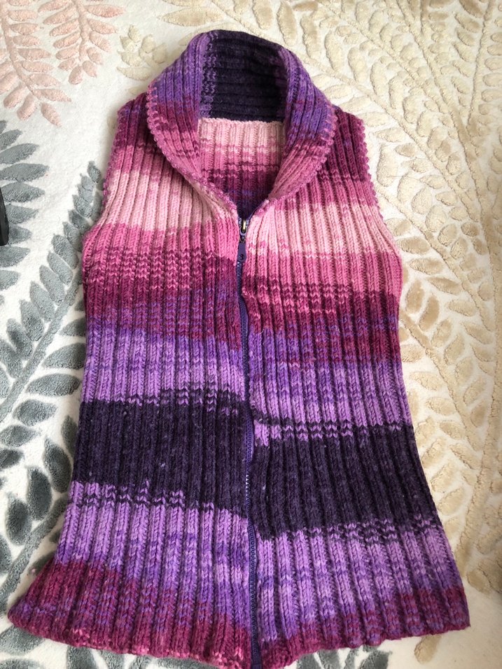Fitted kesim, kolsuz ve balıkçı yaka mor batik desenli örgü kadın yelek. Rahat ve bohem tarzıyla günlük kullanım için uygundur. Çok şık duruyor. Annem örmüştü artık bana olmuyor. Esneme payı fazla o yüzden uzun zaman kullanılabilir tam olarak yaş aralığı verememekle birlikte 10 ila 14 yaş skalasına minyon zayıf bireylere uyacağını düşünüyorum.