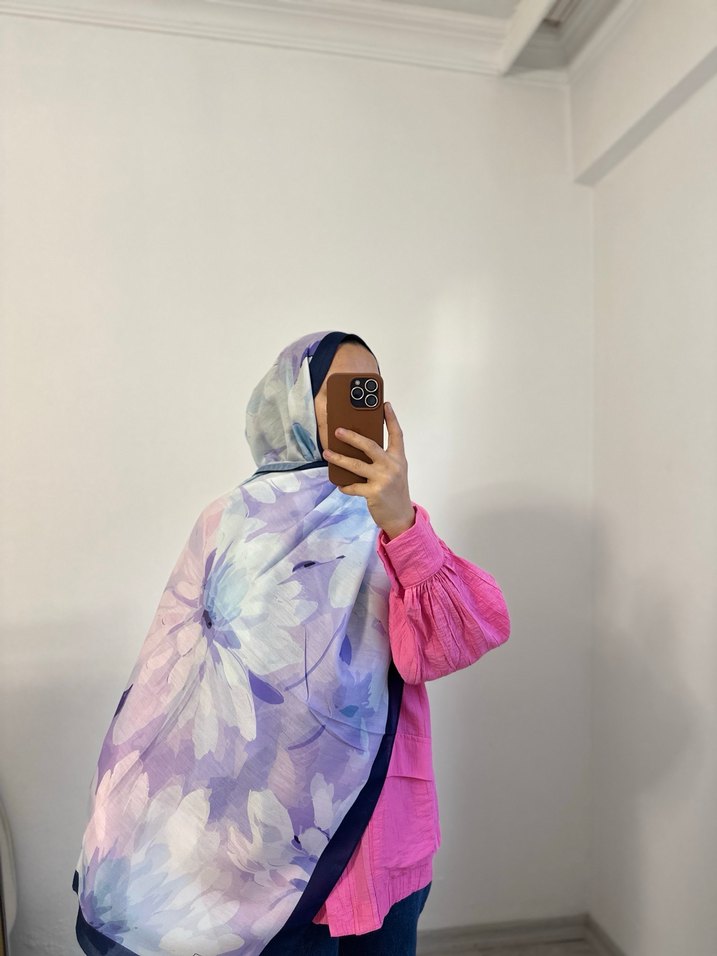 Bu kadın şalı, pastel mor tonlarında drapeli tasarımı ve yumuşak sentetik kumaşı ile bohem sokak stiline uygun, mütevazı bir görünüme sahiptir.