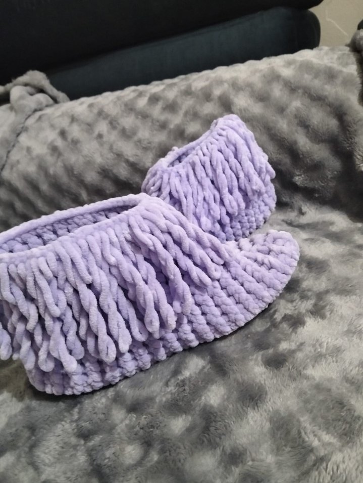Pastel mor renkte, bohem tarzda örgü desenli kız ev terlikleri, sıcak ve rahat bir kullanım sağlar. istenilen ölçüde yapılır