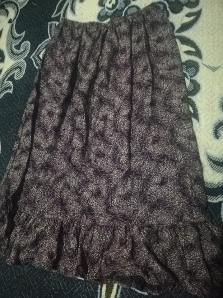 Bu koyu mor uzun etek, bol kesim ve bağlama desenli, yumuşak sentetik kumaştan rahat bir dokunuş sunar. Bohem ve retro tarzlar için uygundur. biri etek diğeri elbise kısa