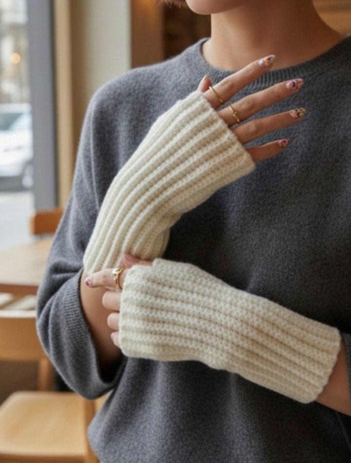 Görsel bana aittir ilan açıyorum Bohem tarzı örgü eldiven rahat ve çizgili örgü deseniyle trendy casual görünüm sağlar.