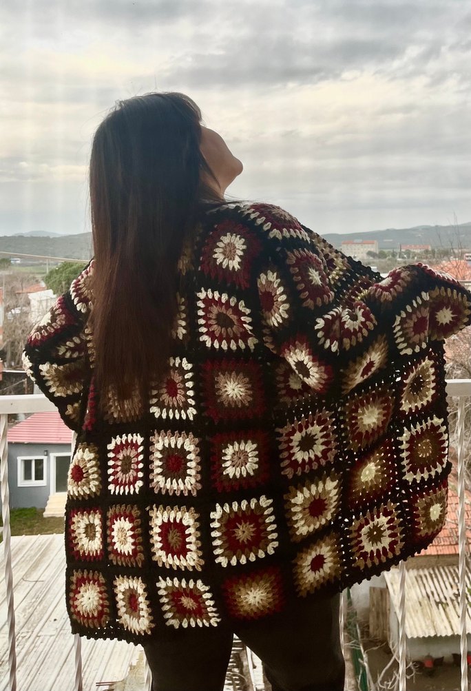 Bohem Tarz Örgü Kadın Hırka, Kahverengi