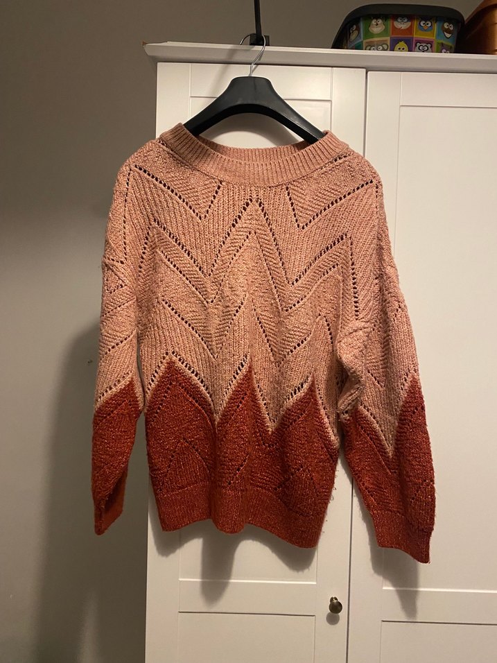 Kadınlar için örgü dokulu, yuvarlak yakalı ve uzun kollu kazak. Gevşek kesim, normal boy ve pastel kahverengi tonlarında, rahat ve bohem tarzda tasarlanmıştır.