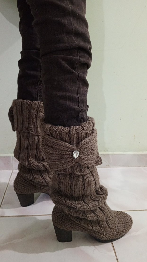 Kadınlar için yüksek topuklu, kahverengi örgü ve rahat tasarımlı bohem tarz botlardır. Günlük kullanıma uygun, trend ve konforlu bir görünüm sunar.