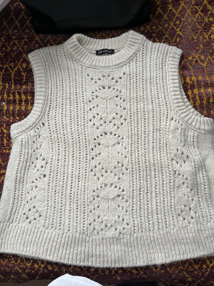 Bohem Tarz Örgü Kolsuz Kadın Süveter - Görsel 1