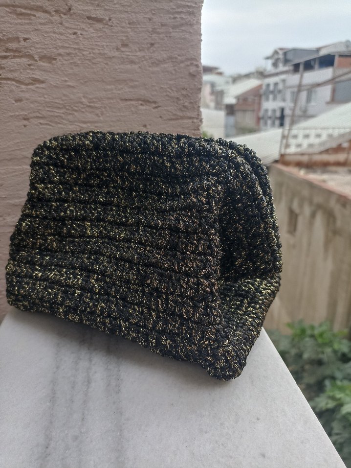 Siyah sarı simli , örgü dokulu, desensiz bohem tarzında kadın clutch çanta. Günlük kullanıma uygun ve gecelerinize şıklık katacak , rahat ve şık bir tasarım.