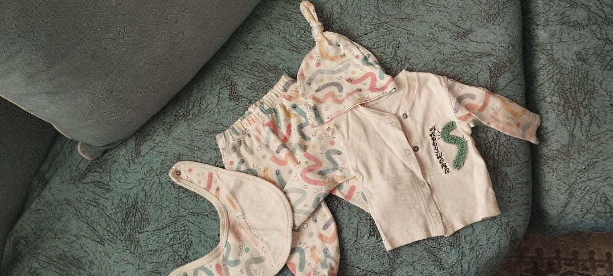 Pastel çok renkli batik desenli, örme dokulu bebek erkek takımı. Askısız ve askılı parçalarla yumuşak bohem tarz sunar. çok tatlı bir takım sorunsuz ve tertemiz yenidoğan ve 0-3 ay için