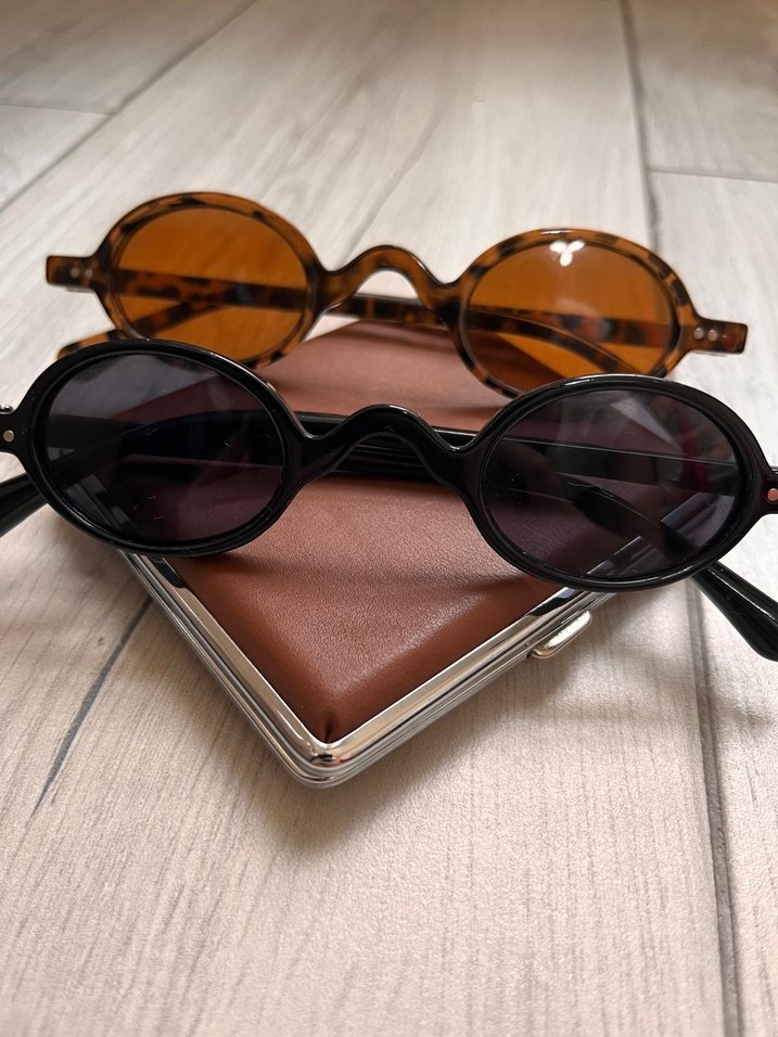 Koyu kahverengi ve siyah oval çerçeveli, bohem ve retro tarzda kadın gözlükleri, zahmetsiz şıklık sunar. ️