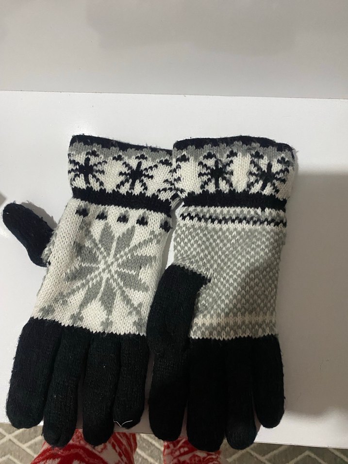 Beyaz ve gri renklerde, örgü desenli, bohem ve hippie tarzına uygun sıcak tutan retro kadın eldivenleri.