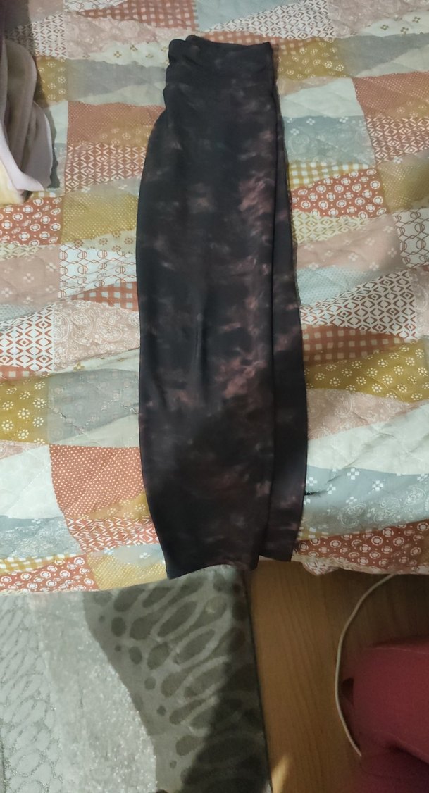 Yumuşak sentetik kumaştan, koyu batik desenli, oturan kesim uzun kadın pantolonu. Drapeli tasarımıyla bohem sokak modası havası verir.