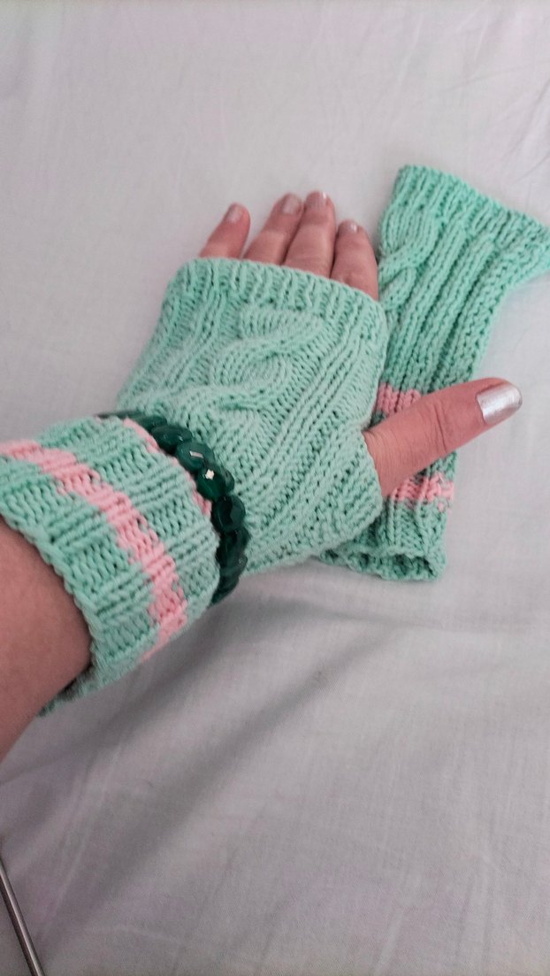 Turkuaz pastel renkli, örgü ve parmak ucu açık bohem tarz eldiven. Örgü desenleriyle sıcak tutar.