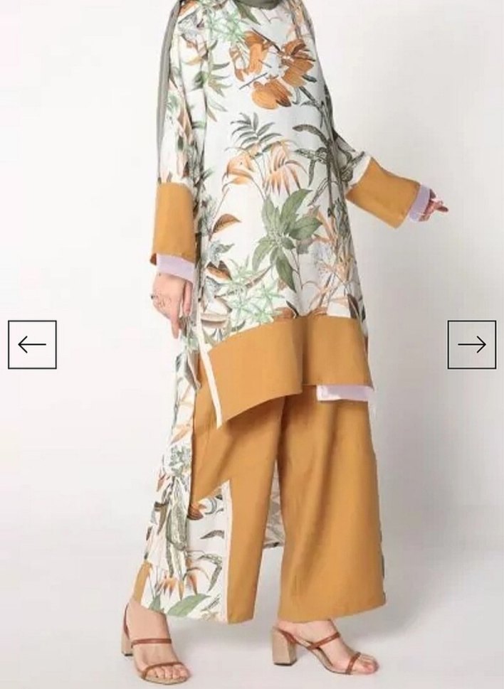 Bohem Tarz Uzun Bej Baskılı ikili takım