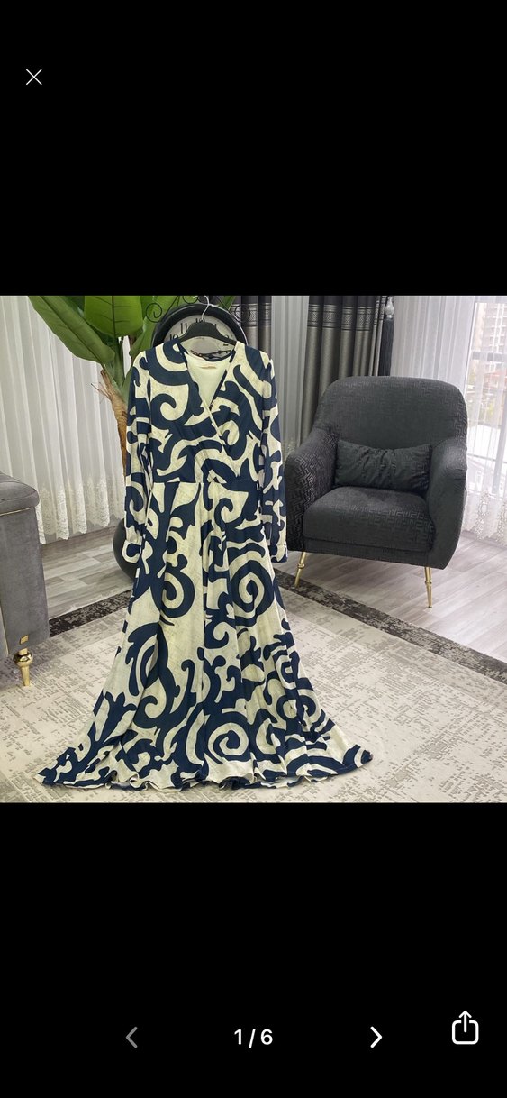 Uzun kol ve V yaka detaylı, bol kesim bu uzun elbise, gri ve çok renkli büyük desenlerle bohem ve retro bir tarz sunar. Ofis için uygundur, sentetik kumaştan üretilmiştir.