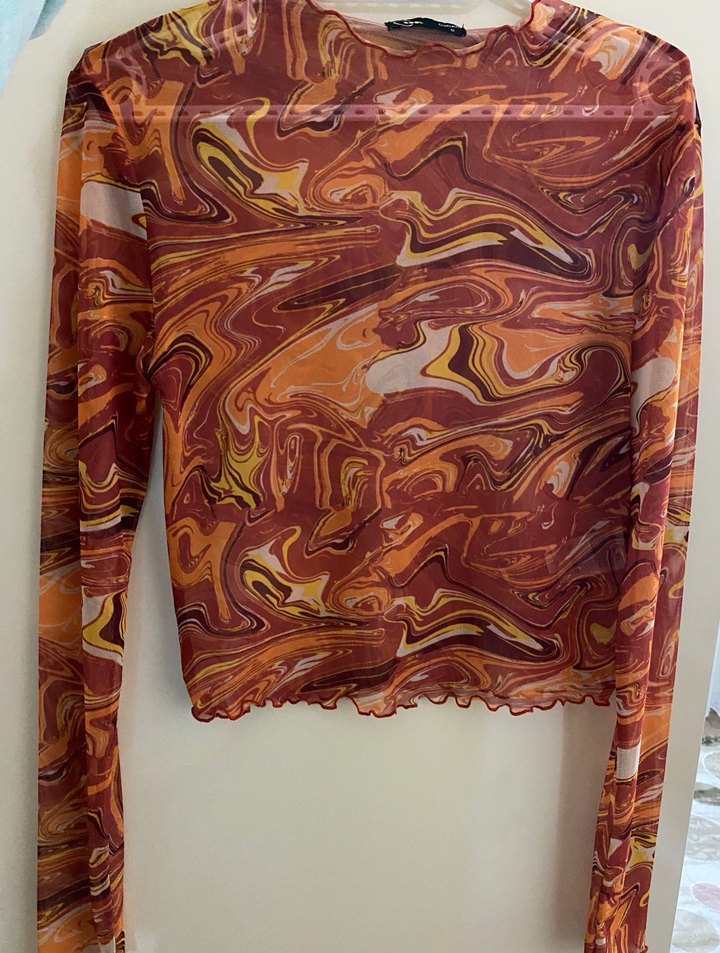 Bu dar kesim bluz, uzun kollu ve balıkçı yaka olup koyu çok renkli batik desenlidir. Drapeli tasarımı ve normal boyu ile bohem tarzını yansıtır. Kusuru yoktur