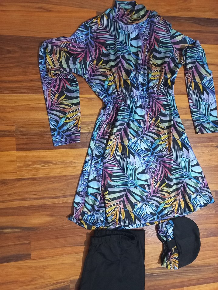 Renkli ışıl ışıl bir mayo bel kısmı beli kavrıyor çok güzel şekilde göğüs koruyuculari içinde mevcut değil isteğe göre eklenebilir bir defa giyildi yeni temiz 42 beden ben s bedenim kullanabildim s ile l beden arası kullanıma uygun
